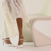 Les cloches du mariage sonnent et KAMRA PEARL est l'escarpin idéal. Ce talon fin et fuselé présente un bout pointu recouvert de satin blanc et une élégante bride ornée de perles couleur crème. Idéale pour la fiancée ou une invitée, cette merveille de mariée est un incontournable de la saison.